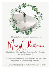Lighter presses (like many burger presses) don’t provide enough downward force to hold the fish flat, which leads to curling skin and uneven cooking. The Fish Weight’s carefully calculated mass ensures the fish stays completely flat while still being manageable to lift and move.