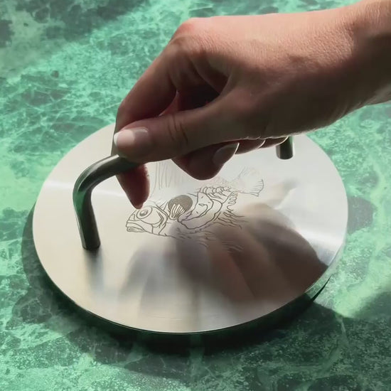 The Fish Weight is a professional-grade stainless-steel tool designed to help you achieve exquisite, restaurant-quality crisp skin fish effortlessly. Created by chef Josh Niland, this elegant piece of cookware ensures your fillet stays flat, cooks evenly, and develops a perfectly crisp skin, all without needing to finish in the oven.